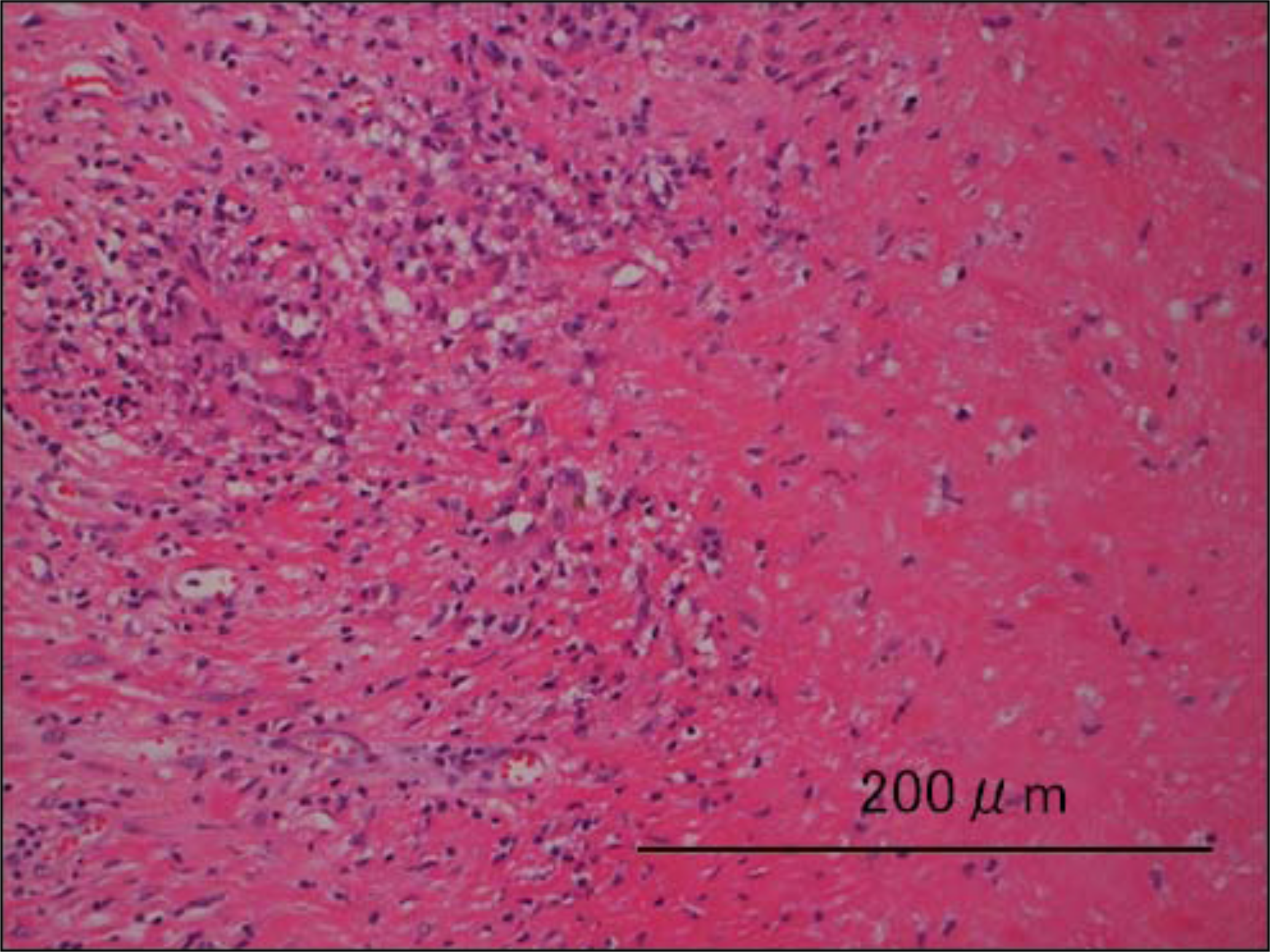 Figure 10: Pathological specimen of Case 2 (hematoxylin and eosin, ×20). See text.