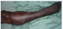 Mrs. S.B, a 49 year-old woman, of precarious socioeconomic status, a non- smoking person and a non-drinker, was a patient who is with the Human Immunodeficiency Virus type 1 and 2. She was also on Tuberculosis treatment for pulmonary tuberculosis. This treatment associated Rifampicin (10mg/kg per day), Isoniazid (5 mg / kg per day) and Pyrazinamide (10 mg / kg per day). On the 7th day of the Tuberculosis treatment occurred an acute ischemia of the lower left limb characterized by a sudden onset of cyanosis from the toes, up to the lower ¼ of the left leg (Figure 1).