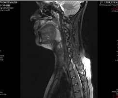 Figure 1: Magnetic resonance imaging revealed hyperthophy of the lingual tonsil neck lymphadenopathy.