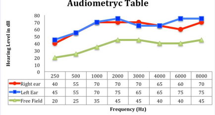 Figure 1: Illustration shows the patient audiometry in both ears using hearing aids.