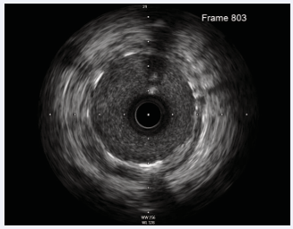 Figure 5: Final IVUS post stent deployment shows well opposed and expanded stents with resolution of haematoma