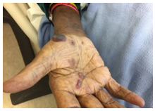 and then he noticed the blisters on his hands appearing later in the disease progression (Figure 3).