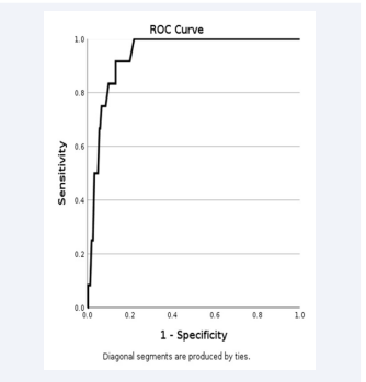were sensitivity is plotted against 1-specificity. The obtained Area under the Curve (AUC) provides the value for the accuracy; in this case for HSIL. The lowgrade cervical lesion category showed a low PPV and high NPV value of 31% and 83%, respectively, resulting in an accuracy of 73%. The follow-up smears with NILM showed a PPV and NPV value of both 64% (Table 2) (Figure 3).