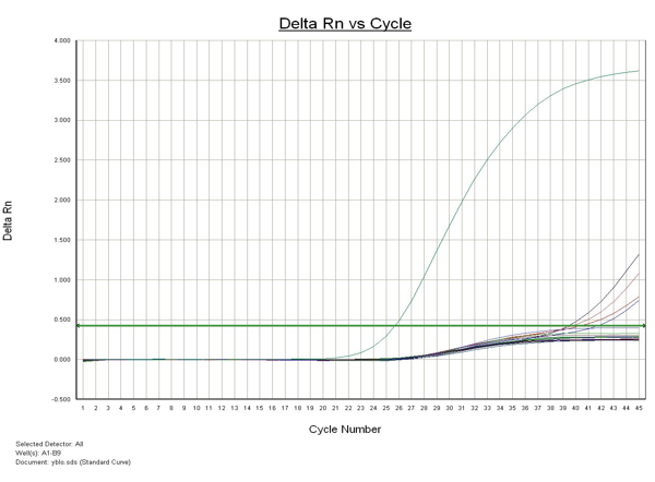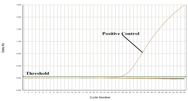 Figure 1: Graphical indication of real time PCR of screening test IS711 for presence of Brucella genus in amplified DNA.