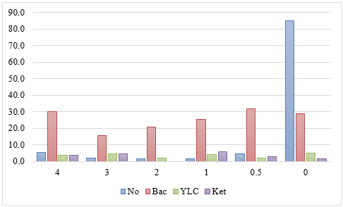Glucose was elevated to 4+ in 172 (5.4%) specimens and 3+ in 64 (2%); while 2715 (85.1%) came back negative. The results correlated with the clinical picture. Yeast like cells were noted in 6 specimens which also came positive for glucose (4+). Similarly, 6 specimens showed positivity for ketones. Bacterial counts were elevated in 52 specimens (Table 2, Figure 3).