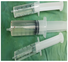 Figure 6: Show aspiration of fluid from intact cyst.