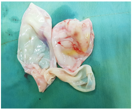 Figure 7: Show laminated membrane from intact cyst.