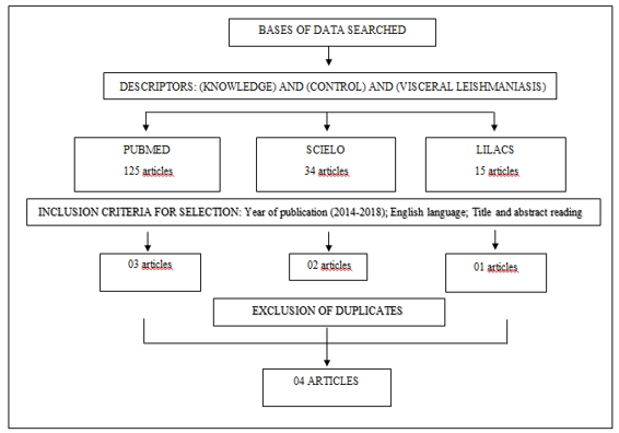 The criteria for inclusion of articles were: from 2014 and in English. The first step was based on the analysis of the title and abstract of the manuscripts with the intention of selecting those that met the selection criteria. After this step, the articles were analyzed in their entirety and were included those who approached residents’ knowledge about visceral leishmaniasis.