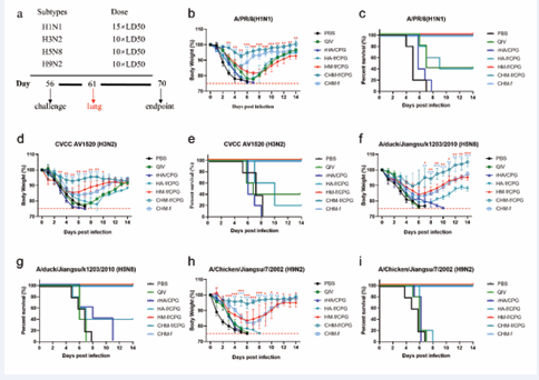 Figure 3 Cross-protection of CHM-f nanoparticles against different IAV subtypes