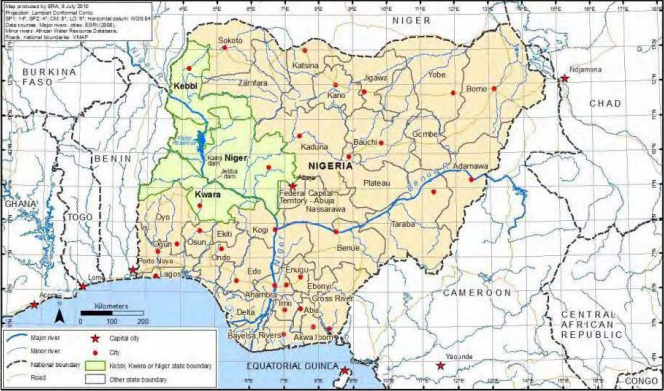 The entire study area around Kainji and Jebba Lakes was divided into three independent areas based on the States; Niger, Kebbi and Kwara states. The sample size for each State was calculated using the following well-known sampling equation (Cochran, 1963):