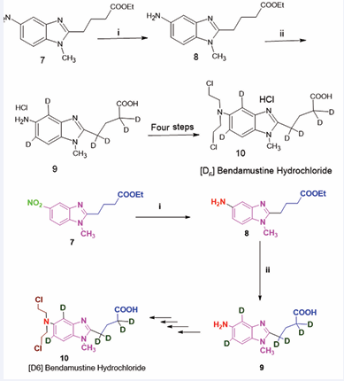 - iu B, Qin H, Zhang Y. An efficient and facile synthesis of deuterium- labeled anticancer agent bendamustine hydrochloride. J Labelled Comp Radiopharm. 2018; 61: 869-874.