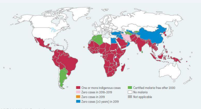 Malaria is a parasitic disease that triggers fever, chills and a flu-like illness. Symptoms usually appear after a period of seven days or more after infection from a mosquito bite. Early diagnosis and treatment of malaria is key. If left untreated, the disease can lead to severe illness and death. The best available treatment, particularly for Plasmodium falciparum malaria, is artemisinin- based combination therapy (ACT). There is no commercially available vaccine against malaria although a promising vaccine against P. falciparum is currently being evaluated in a large clinical trial in seven African countries. Globally, there were an estimated 229 million malaria cases in 2019 in 87 malaria endemic countries and 384 000 malaria deaths, the WHO African Region accounted for about 94% of cases and deaths globally [1] (Figure 1).