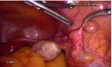 Figure 1: Pedunclated parietal peritoneal gangernous small fatty fold