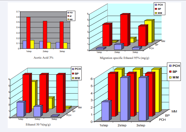 Figure 3: Migration behavior of PET compared to the three contaminants and in the three stimulants and Changes the Parameters of Molecular structure.