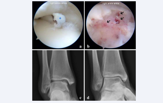 (c) Pre-operative XR showed significant talar dome chondral defect with subcondral sclerosis.