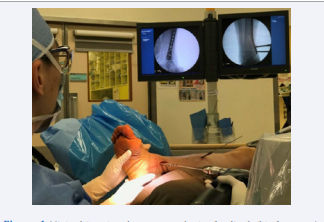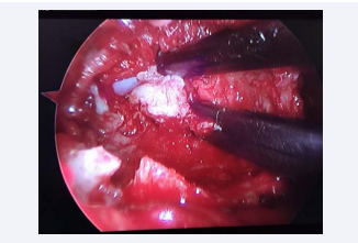 Figure 2 Microendoscopic view of lumbar discectomy for prolapsed intervertebral disc
