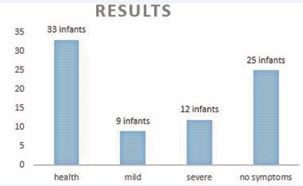 At the end of the 1.5th or 2nd years of life, the distribution of the development of the 79 infants who suffered unilateral cerebral insult and received regular follow-ups was the following: 21 infants developed hemiparesis (differing in severity), 12 cases having severe, 9 mild symptoms (latent: detected only in certain test positions, but barely noticeable in everyday life, i.e., a slight difference in hand preference, muscle tone, and walking). Despite the lesion, twenty-five infants did not show any signs of hemiparesis at first or at the closing examination, did not need or receive any therapy, and are healthy. Thirty-three infants initially with hemiparesis showed no symptoms at the final tests and were determined healthy due to successful treatment (Figure 7).