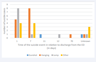 Figure 1 depicts the time and method of suicide in relation to the discharge of the individual from the ED.