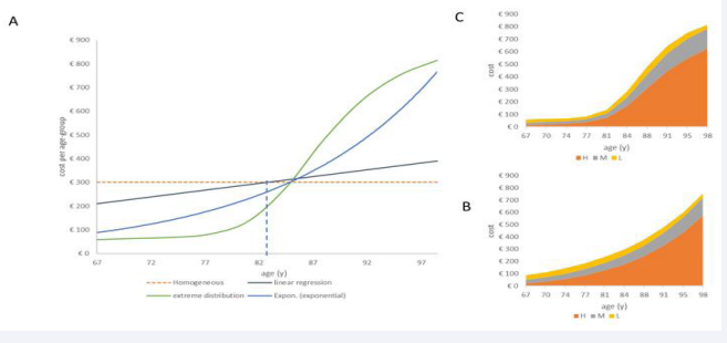 Conclusion: Assessing the current cost burden of infectious diseases in aging adults must consider exact age-composition of the demography, the type of infection spread with severity levels in function of age and their cost differences between severity levels to avoid unrealistic cost estimates when assuming unreal homogeneous group conditions that could currently overestimate the real costs.