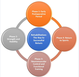Following ACLR surgery, a comprehensive rehabilitation program is crucial for returning to sports. Glattke et al. [6] conducted a systematic ACLR recovery and rehabilitation review using Level I or II studies published from 2012 to 2020. They discovered that expedited rehabilitation had shown efficacy in patients undergoing semitendinosus-gracilis grafts. However, blood flow restriction training combined with high-intensity exercise does not yield positive outcomes in the ACLR recovery process. The rehabilitation process often encompasses multiple phases, each dedicated to certain objectives and gradually increases in intensity.