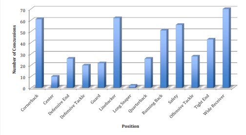 Figure 1: Chart demonstrating the number of concussions sustained by National Football League players by position.