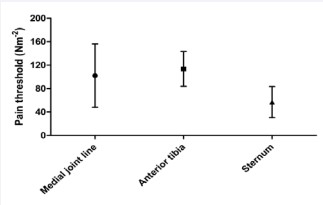 The main limitation of this study is its size. A cohort of 20 participants was used based on a power calculation using data from a previous study we performed on the test - retest reliability of pressure pain threshold in knee osteoarthritis [17]. The small cohort also represented the fact that this was a pilot study and was also a logistically appropriate number considering the niche group of participants we were testing. Despite its size, however, the study has demonstrated clear and significant outcomes for drawing preliminary conclusions which are suitable for the basis of further studies.