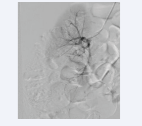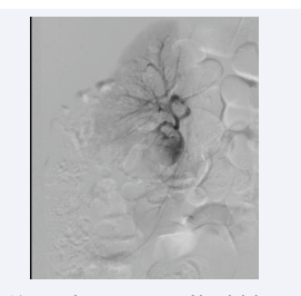 Glue (n-butyl-2- cyanoacrylate) and lipiodol combination were used for embolization (Figure 5).