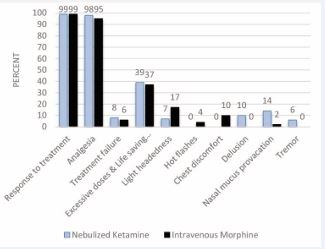 Conclusion: Nebulized ketamine can be considered a viable alternative to intravenous morphine in emergency trauma patients due to its comparable analgesic effect and faster onset without the complications associated with intravenous morphine.
