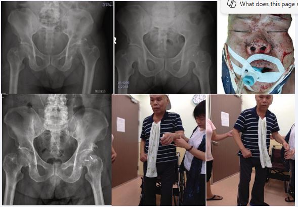 Figure 6 Radiographs and early rehabilitation Pre-operative and post-operative anteroposterior pelvis radiographs without noticed avascular necrosis at left femoral head with early mobilization photographs at follow-up.