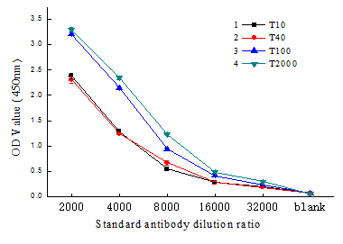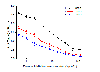 Figure 9: The OD value of different dextran antigen combined with standard dextran antibody.