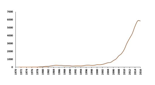 Figure 1: Trend of papers published on biogas (Source: SCOPUS).