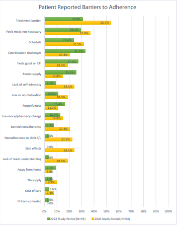 Evaluation of Cystic Fibrosis Medication Adherence and Barriers in 2020 and 2022