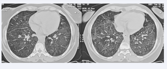 Chest CT scan showed bilateral ground-glass opacities associated with reticulations giving a “crazy paving”appearance (Figures 2).