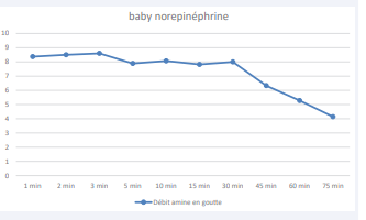 Spinal anesthesia is responsible for sympatholysis, which will lead to a reduction in cardiac output and blood pressure. This mechanism is understood by an increase in venodilation, which will cause a reduction in venous return, and therefore in blood pressure. The use of norepinephrine, whose predominant effects are venoconstriction, will be responsible for an increase in cardiac preload, cardiac output and BP. This explains the maintenance of the BP obtained in this work. Indeed, 78.6% of patients (n=15) had a stable SBP (100-140 mmHg) during the first five minutes after spinal anesthesia. Between the fifteenth and thirtieth minutes, 96.4% had a SBP in the same interval. Over the 75 minutes of norepinephrine administration, the average SBP value was above 110 mmHg. The literature confirms the good impact of noradrenaline on hemodynamics during cesarean sections under spinal anesthesia [6,7].