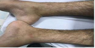 Figure 1 Bilateral foot drops, high arch foots and wasting of lower limb muscles.