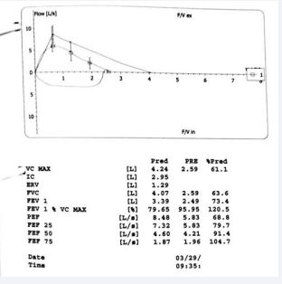 Figure 2 Respiratory functions tests shows mild restrictive pattern.