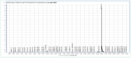 This fraction 1 subject to the LC/MS analysis. In order to further identify their molecular weights, the LC/MS analysis picture for proteins fraction 1 from YZDB-80%Y for as follow (Figure 1).