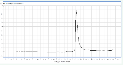 From analysis SDS-PAAG and LC/MS data, we easy find out that this fraction contain a major peak with molecular weight about the 26 - 27 KDa, therefore in order to further identification this major peak, we purified this fraction with high performance reverse phase liquid chromatography (HPLC). The data was shown at (Figure 3). The fraction that was collected by HPLC at 30.29 min and further subject to analysis with LC/MS, the LC/MS spectrum of this protein indicated that this a absolute individual protein which appear at 13.56 min in LC chromatography, the result shown (Figure 4) that it is molecular weight was 26032.49 Da in a good accordance with the SDS-PAAG electrophoresis data.