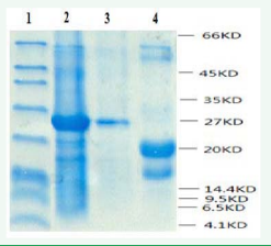 In the present study, we isolated and purified another trypsin inhibitor from chickpea sprout with molecular weight was 26 kDa by ion-exchange chromatography and Reverse Phase chromatography, and studied its part of the primary amino acid structure. Proteins and polypeptides fraction in the chickpea sprouts were extracted and purified as methods described in our previous publications [8, 12]. The molecular weights of the basic proteins fraction of YZDB-80%Y were determined by SDS PAGE electrophoresis in (15%) under dissociating conditions [9]. It can be seen that the YZDB-80%Y fractions are rich in proteins and their molecular weights concentrated on range 20-27kDa.