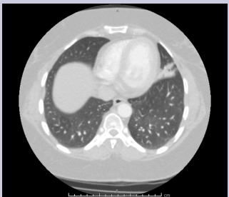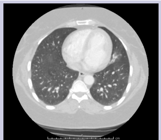 Figure 1: CT Thorax showing a focal opacity involving the left lingula
