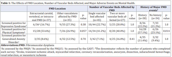 Table 1: The Effects of FMD Location, Number of Vascular Beds Affected, and Major Adverse Events on Mental Health.
