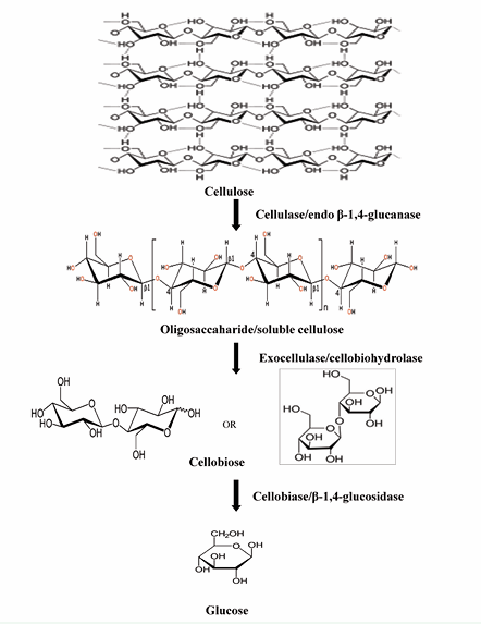 Figure 1: Demonstrates enzymatic hydrolysis of cellulose into glucose.