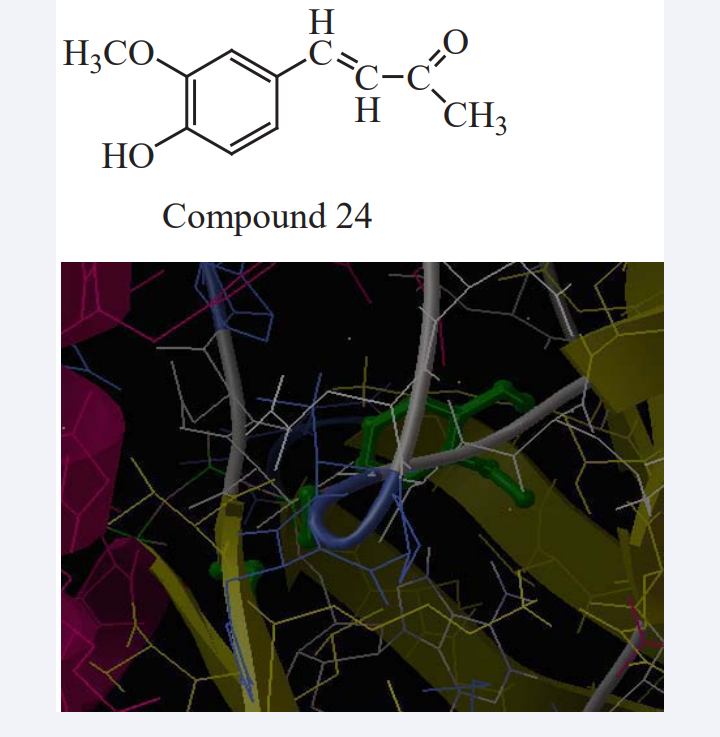 Karpakavalli m. et al have reported curcumin, a phyto constituent of Curcuma longa has pursued the attention of research chemists, as it is found to possess a number of pharmacological activities. In that 4-(4’-hydroxy, 3’-methoxy) phenyl, but-2-one-3-ene, a curcumin analog precursor is aimed to be synthesized and tested for anticancer activity. Aldol condensation of mono carbocyclic aldehyde and the enol form of a 2, 4-diketone in the presence of an organic amine catalyst, the principle is used for the synthesis of said molecule. The invention also relates to the use of the synthesized product for in vivo acute toxicity and in vitro anticancer activity. EGFR were selected from RCSB protein data bank, based on the presence of ligand, X-ray diffraction and 2.0-2.5 A ° resolution. A comparative protein- ligand dock analysis was performed using 2GS6 extracted from PDB to evaluate the algorithm and scoring function efficiency between Auto Dock 4.0.1 and experimental activities as shown in Figure 22. All these computationally designed molecules, as well as the bound ligand of the protein 2GS6, were docked by using the software Auto Dock and the score values are predicted [44].