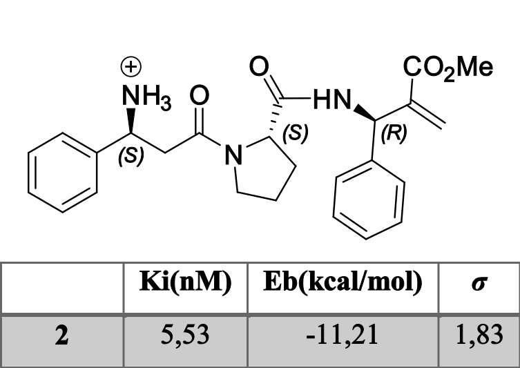 Those with an aromatic residue in the first side chain seem to form π-π interaction with the receptor, and those with proline as the second amino acid, so peptide’s rigidity is increased, had the better results, as it is shown in Table 3.