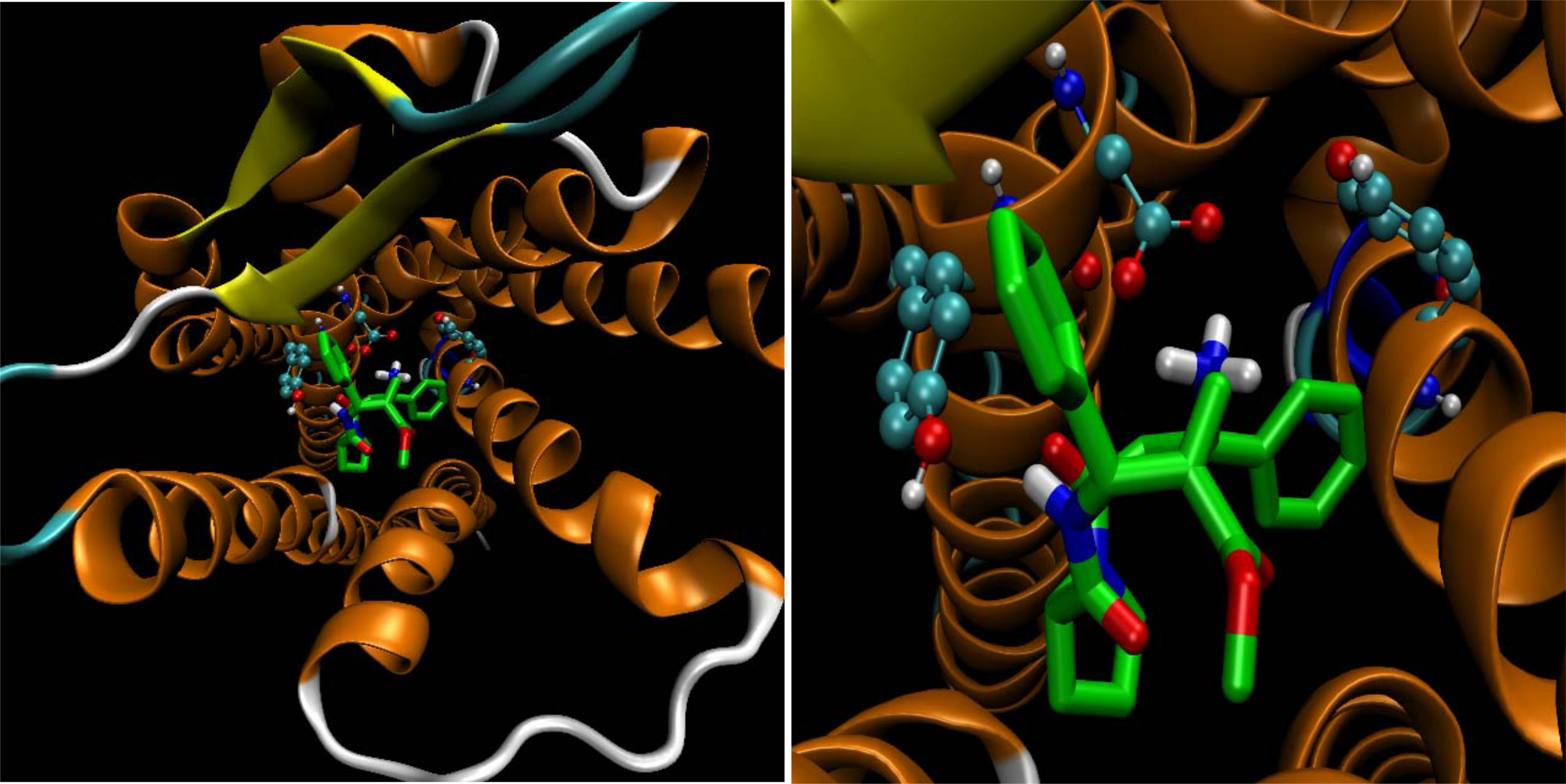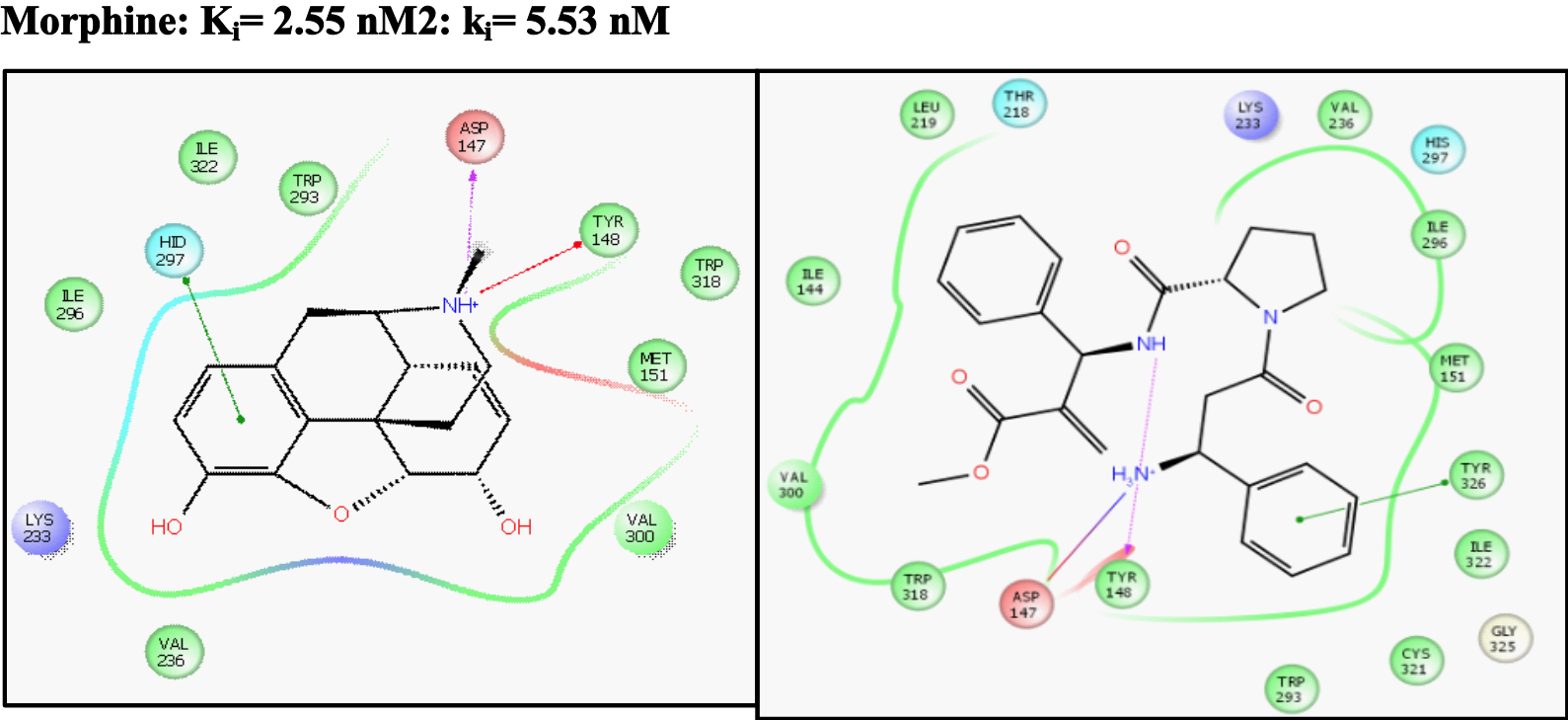 Both results and ligand-receptor interaction are comparable with morphine’s, as it is shown in Figure 2,