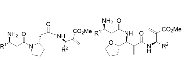Despite the fact that they are less common than α-amino acids in nature [5], β-amino acids are proving exceptionally useful in the pharmaceutical industry because of their properties [6-9]. In regards to biological activity, it is known that β-amino acid based peptides are able to establish their secondary structure with fewer amino acids than their relative α-amino acids based peptide [10-12].