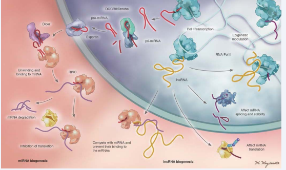 Figure 3 Biogenesis and functions of miRNAs and ncRNAs in Pulmonary Hypertension.Illustrated by Mao Miyamoto.