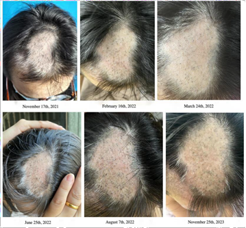 Figure 1: Results observed after the second ectopic microorgan stem cell transplantation procedure, showing significant repigmentation after six months