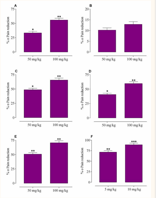 % antinociceptive effect of 100mg/kg |