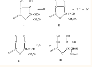 The instable ascorbic acid oxidation to dehydroascorbic acid & subsequently to 2, 3- diketo L-gulonic acid [12].
